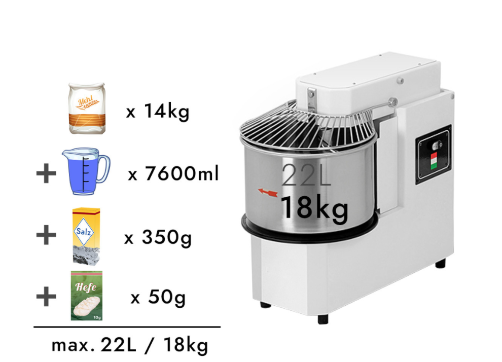 Pétrin 22 litres tête relevable cuve amovible 380V